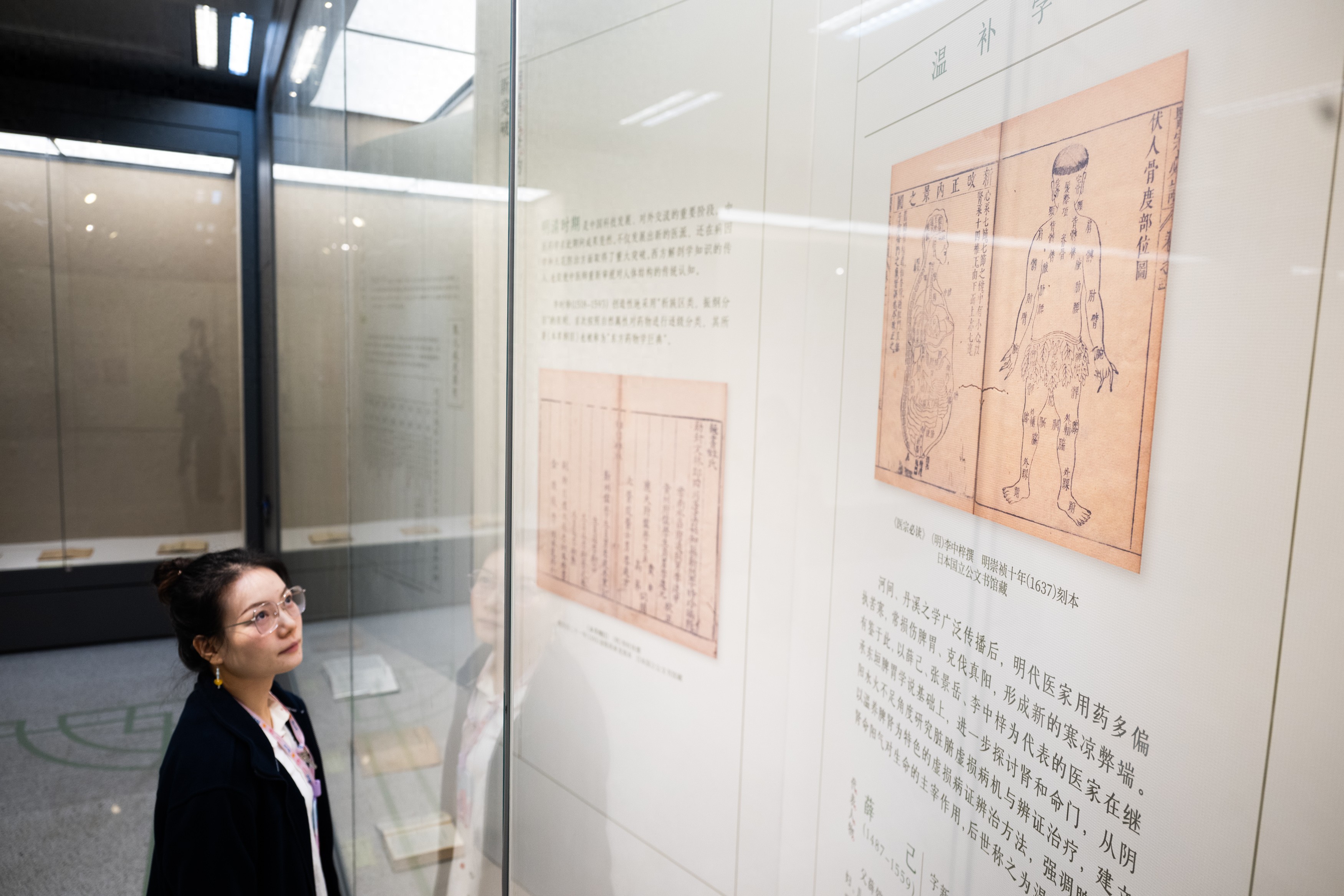 10月28日,参观者在2025年中华传统晒书活动暨长江文化典籍阅读季上观看展出的中药标本。新华社记者 肖艺九 摄